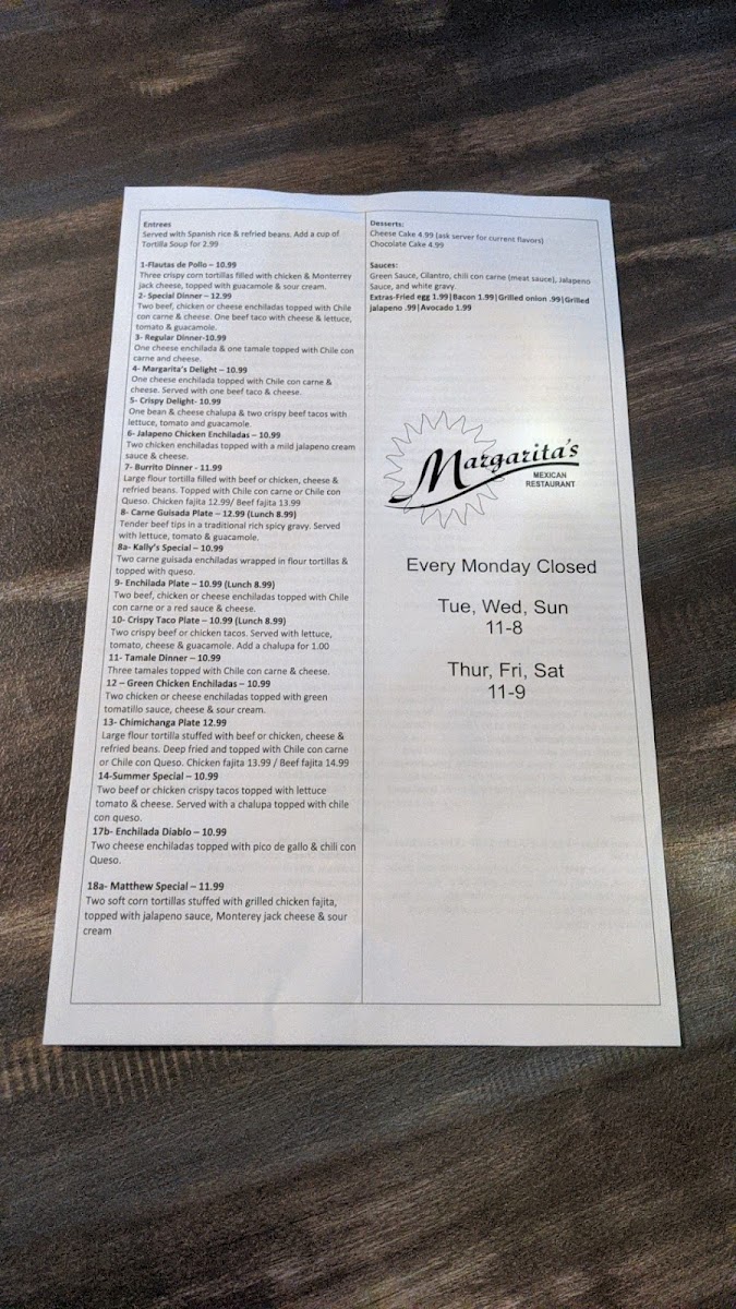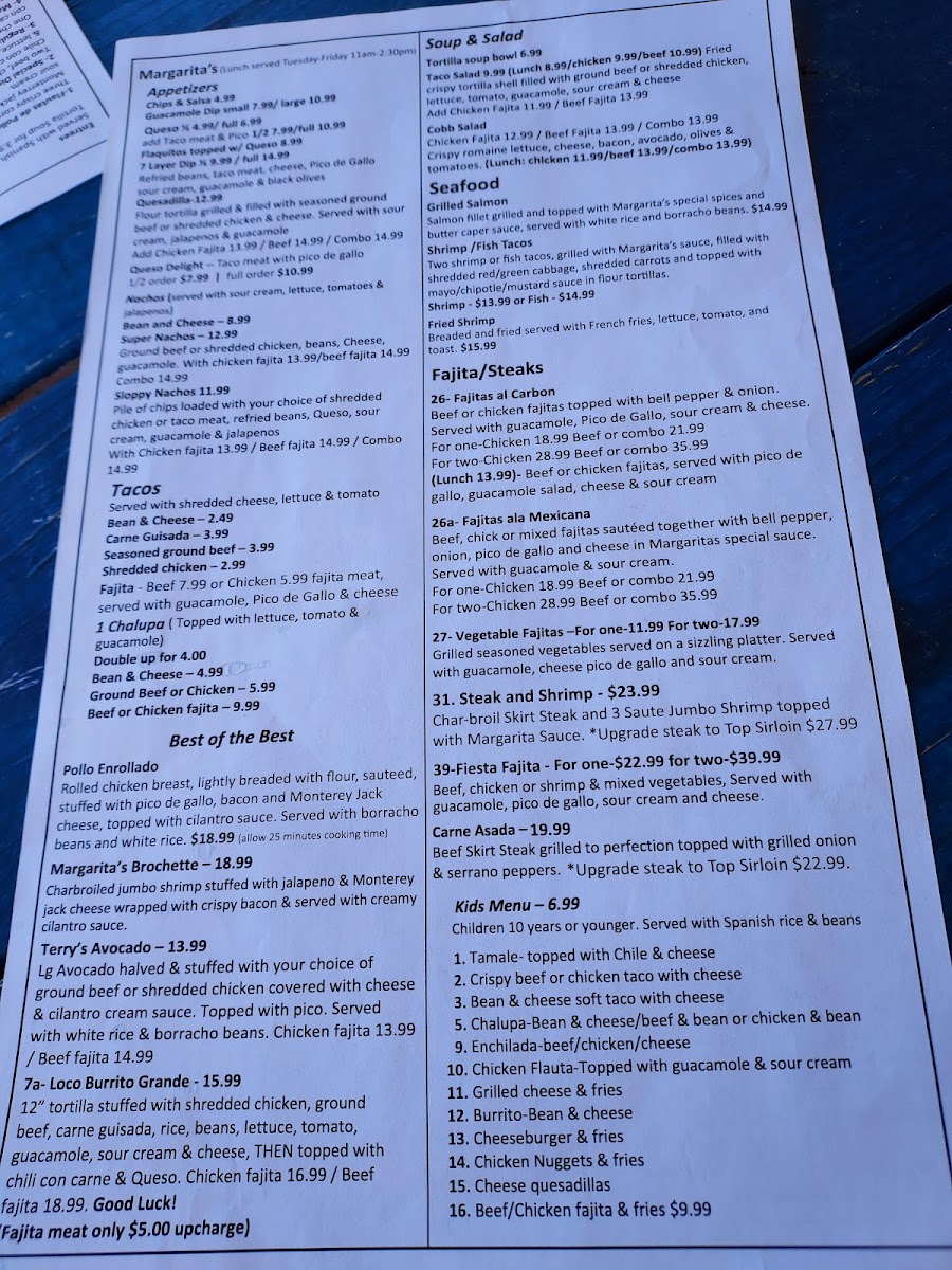 The moment you enter, the staff's warmth and attentiveness create a welcoming vibe, while the owner often engages with guests, enhancing the friendly experience. Margarita's is perfect for families, featuring a playground for kids and an outdoor dining area where you can relax with a refreshing cocktail, like their acclaimed margaritas. Whether you're a local or just passing through, Margarita’s is a must-visit destination for those craving great food and a vibrant atmosphere.